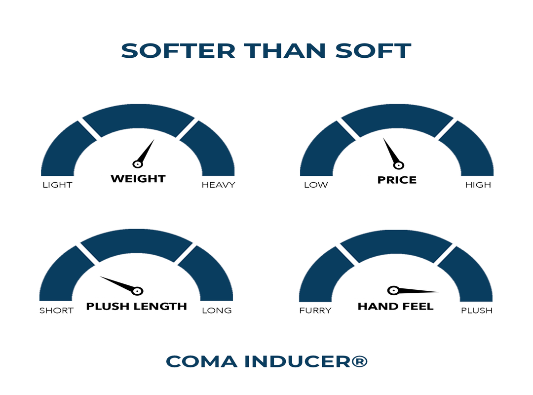 Inspired by seeking the softest and coziest materials that makes it almost impossible to get out of bed in the morning. And what could possibly achieve this goal better than an ultra plush material that is Softer Than Soft®? We go on actual journeys to discover the softest and coziest plush known to mankind. Plush that is so soft, we had to use it for this next collection of Coma Inducers. Our Softer Than Soft Coma Inducer® collection consists of varying fabrics that have one important thing in common; they are irresistibly soft to the touch. Softness levels that break the barrier on what you previously considered soft!! Some of our Softer Than Soft® comforters are even created with Double Sided Plush. This doesn't mean that there is just plush on both sides of the comforter, that is something all Coma Inducers already have in common, rather, it's the backing of the plush that you can't feel. You see, most backing (the portion facing the inner filling) is not plush because it's never going to be seen or touched. Making that backing plush would add costs, but sometimes when creating something that is softer than soft you need to break the rules. That layer of unseen, untouched underside material helps to create a Volumized Plush experience that is beyond normal levels. Dare we call our double plush Softer Than Soft® Coma Inducers a voluptuous oversized sleep experience that is designed to delight and exceed your craving for cozy?