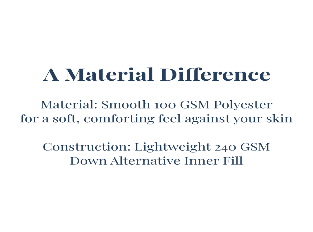 Inspired by the excitement of spring. When warmer temperatures arrive, it brings such positivity that you start to sing "spring is in the air". With the change in season comes the need to switch from your cozy warming plush Coma Inducer® to your lighter weight seasonal Coma Inducer®. You'll still require oversized comfort even with this change, and our Spring is in the Air Coma Inducer® is the perfect option. Made of silky soft 100 GSM microfiber with 240 GSM down alternative filling, it's both lightweight and cozy soft to the touch. It's a squeezable plush where you know it's still a Coma Inducer®, yet not so hot as to make it unenjoyable. Keep singing the praises of warmer weather with our Spring is in the Air Coma Inducer® and you'll continue to enjoy Coma Worthy Sleep® regardless of the season change.