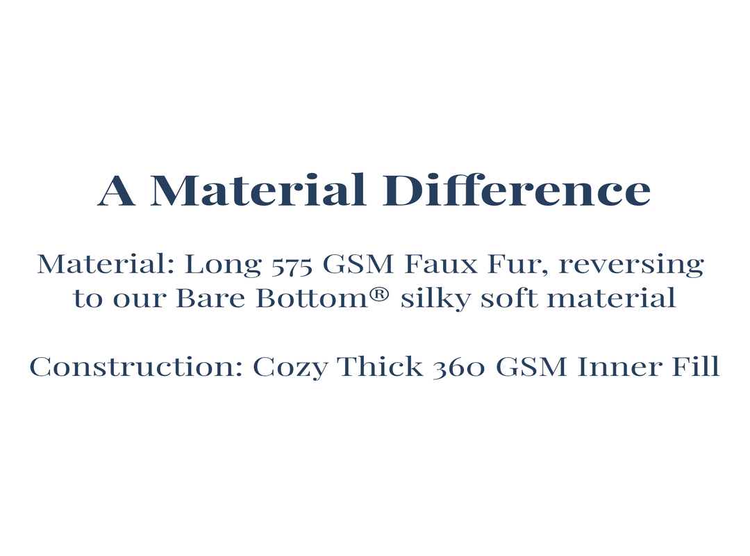 Inspired by Peg Stephens, a Coma Inducer® customer who shared with us the story behind her idea to name a Coma Inducer® "Woobie". Based on the material look and feel, we ad-libbed a little with the full name: The Woobie Goat Coma Inducer®. Made of super soft and fluffy 570 GSM Goat Faux Fur (yes, Goat Faux Fur!) reversing to our Bare Bottom® silky soft plush, you'll experience the best of both long and short plush bedding comfort. Running your hands through the furry side is so satisfying and having the opposite smooth plush style on the reverse adds a soothing softness and warmth. This amazing hand feel is coupled with a thick, down alternative 360 GSM fluffy cloud-like filling that is certain to induce Coma Worthy Sleep®!