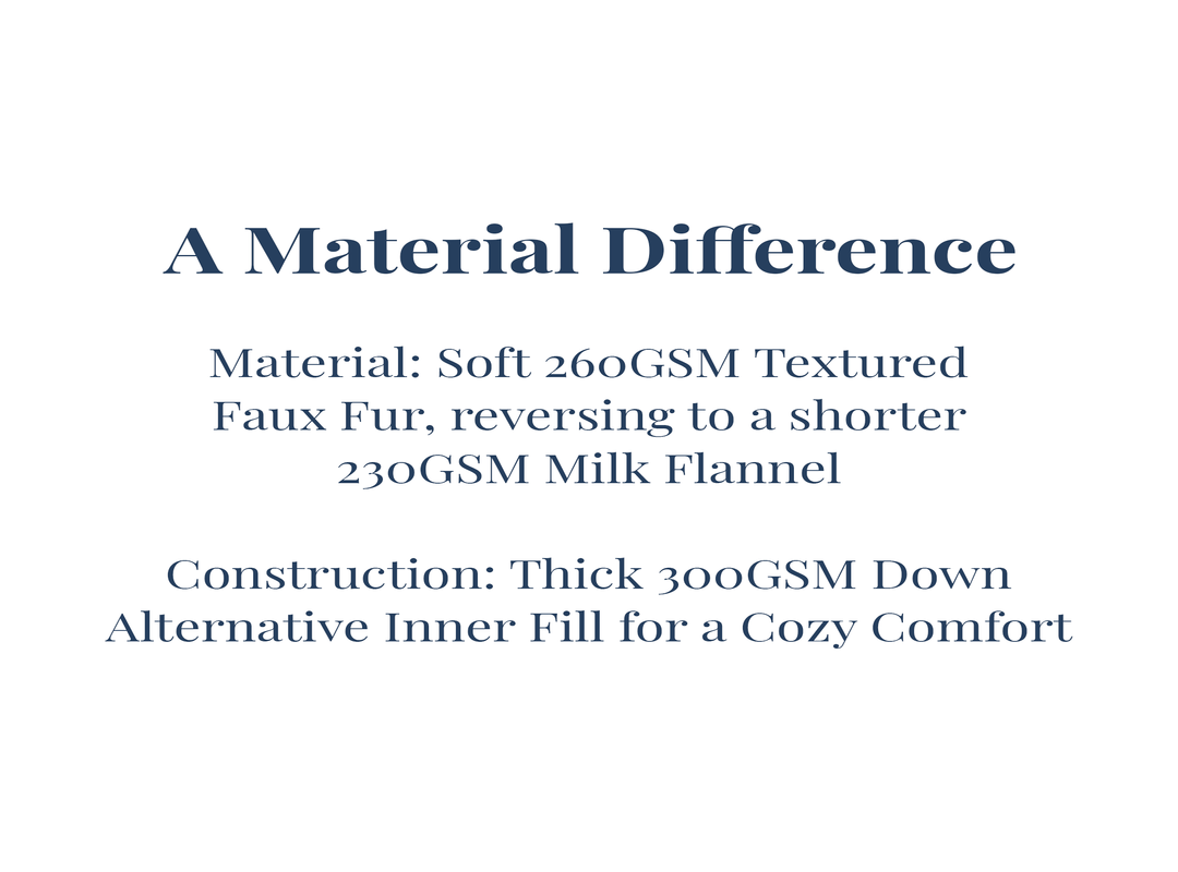 Inspired by those of you that crave a tactile sensation. If you find it irresistible to run your hands through fabric with texture then you know why we created Tons of Texture. The circles of plush create a random textured pattern throughout, causing you to continuously pet your comforter while wondering why you can't seem to stop. It's okay, trust us, that's normal! Our Tons of Texture Coma Inducer® has the best of both worlds, a top side of 260 GSM short plush with a unique pattern and feel, followed by our 230 GSM milk velvet that can only be described as luxuriously soft. The pairing creates a yin and yang effect that can serve both your need for texture and your craving for comfort. If that's not enough, we also gave this Coma Inducer® a thick Down Alternative fill that is designed to make leaving your bed the biggest challenge of your day.