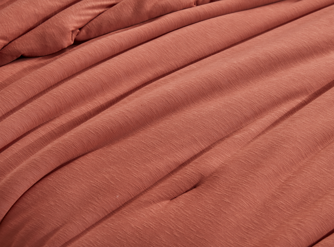How is it possible for a Twin, Queen, King, or Alaskan King oversized comforter set to have such an impressive impact on your bedroom decor and your sleep quality at the same time? Designed by our team of luxury bedding experts, everything about this extra large Twin, Queen, King, or Alaskan King bedspread set is fine-tuned to meet our high standards for designer bedding. Everything is intentional—from the trendy burnt orange color shade, to the premium bedding materials used inside and out, even down to the specific oversized bedding dimensions used for each size of this Twin, Queen, King, or Alaskan King bedding set. Constructed with a combination of soft Slub Jersey fabric and a fluffy down alternative filling, this Twin, Queen, King, or Alaskan King all season comforter set provides the perfect level of coziness that keeps you nice and warm without overheating. And with Coma Inducer®’s signature extra large bedding dimensions, every inch of even the thickest pillow top mattress gets the VIP treatment when you choose this oversized Twin, Queen, King, or Alaskan King designer comforter set.