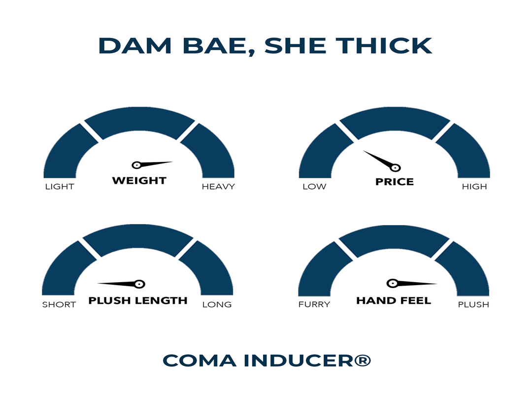 Inspired by Dam Boi, He Thick® and the latest in the series of Coma Inducer® Comforters titled; THICKEST. Dam Bae, She Thick® is an IMPRESSIVELY THICK @SS Comforter! We don't mean to shout it out but, seriously, you haven't seen a thick comforter until you've seen Dam Bae, She Thick®! You know this Coma Inducer® is THICK because many Coma Inducers have a 280 GSM fill rate, while Dam Bae, She Thick® boasts almost 3X that rate with 800 GSM best-in-class, microfiber filling. What further adds to the extra warmth and coziness of Dam Bae is that she consists of our most popular Original Coma Inducer® material on one side with a reverse side of our second most popular plush, our Me Sooo Comfy® material. When you pair the TOP 2 Coma Inducer® materials and give that combo an insanely thick fill rate, you'll have a BIG PROBLEM...leaving your bed! When getting out of bed is the hardest part of your day, you can lie tucked away buried in comfy coziness thinking "Dam Bae, She Thick®"... so thick that you can't do much else besides stay cozy in bed for longer than you planned.